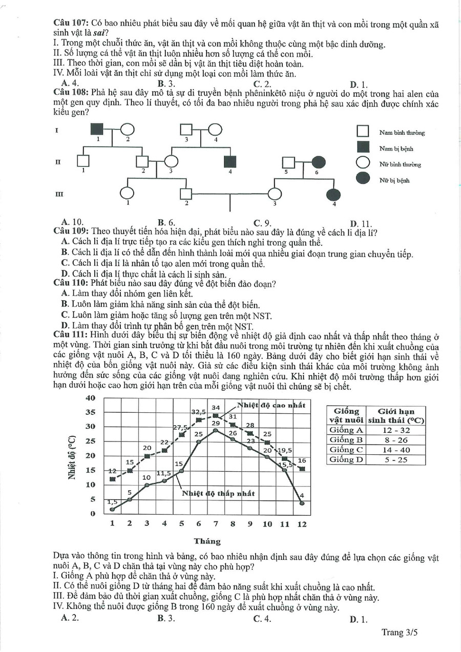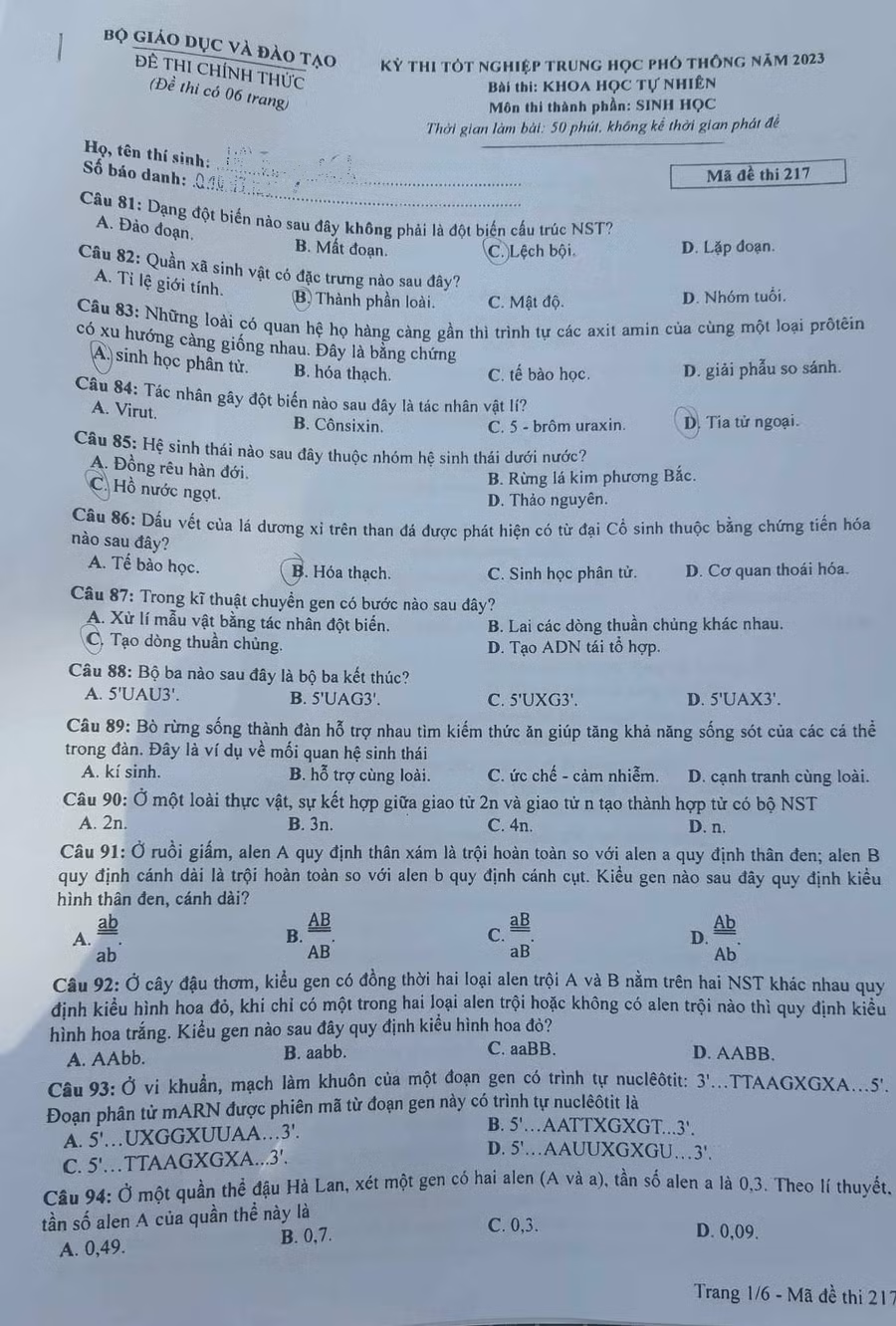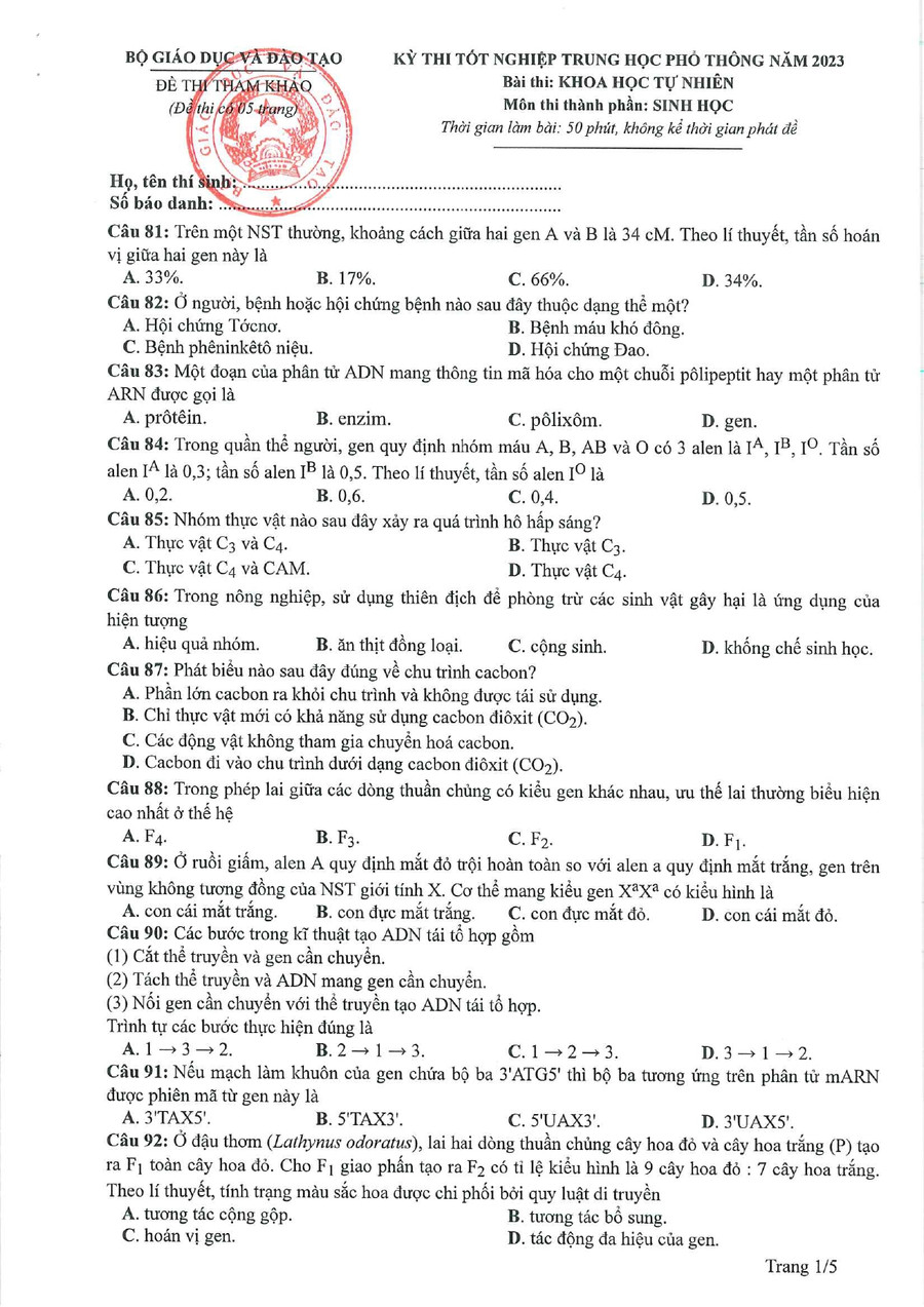 Mời quý độc giả tham khảo đề thi môn Sinh học thuộc bài thi tổ hợp KHTN kỳ thi tốt nghiệp THPT 2023: