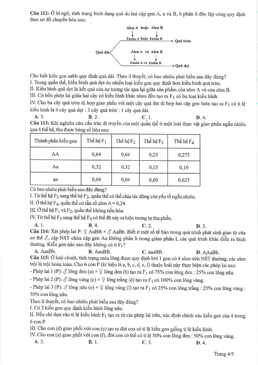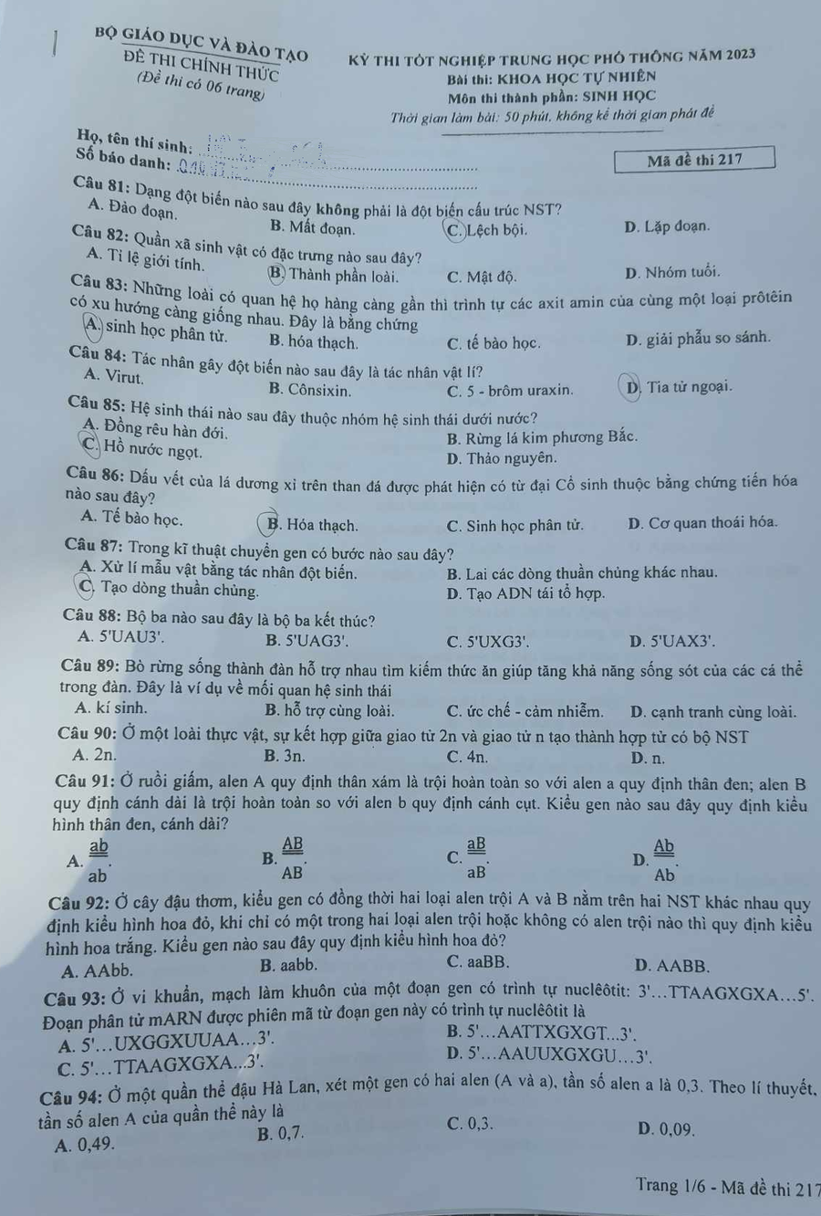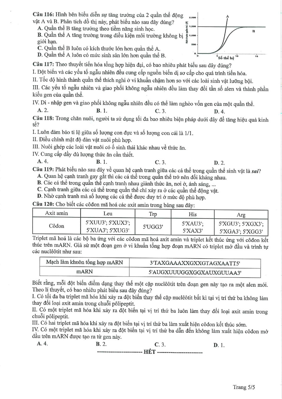 Mời quý độc giả tham khảo đề thi môn Sinh học thuộc bài thi tổ hợp KHTN kỳ thi tốt nghiệp THPT 2023: