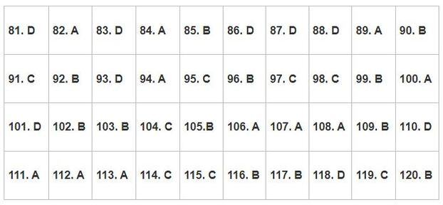 | 111. B | 112. D | 113. D | 114. C | 115. A | 116. C | 117. C | 118. A | 119. A | 120.B |