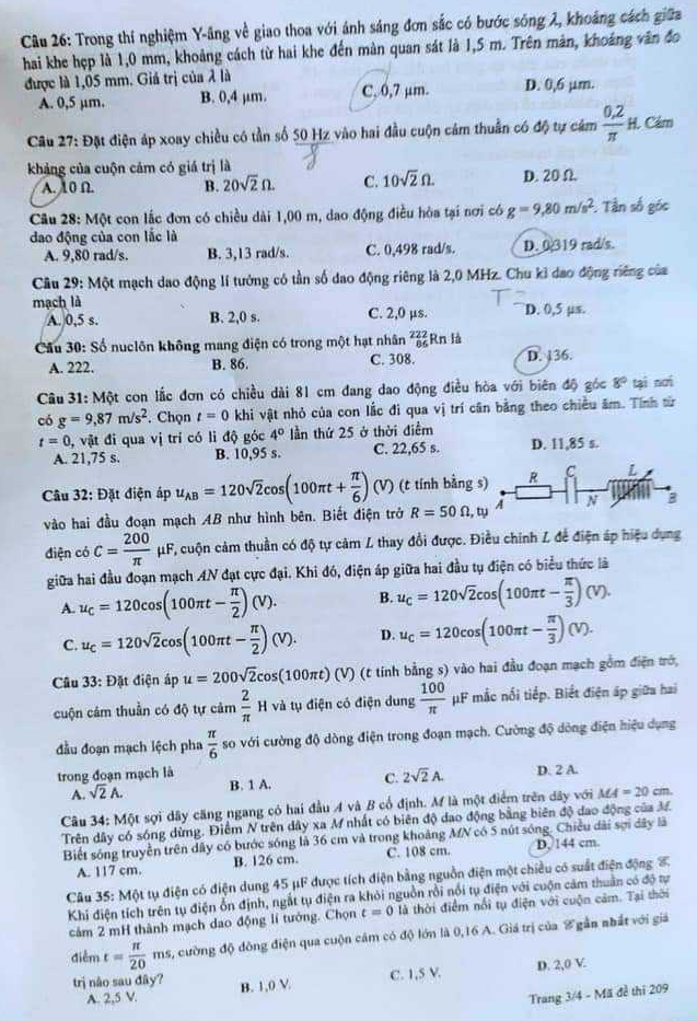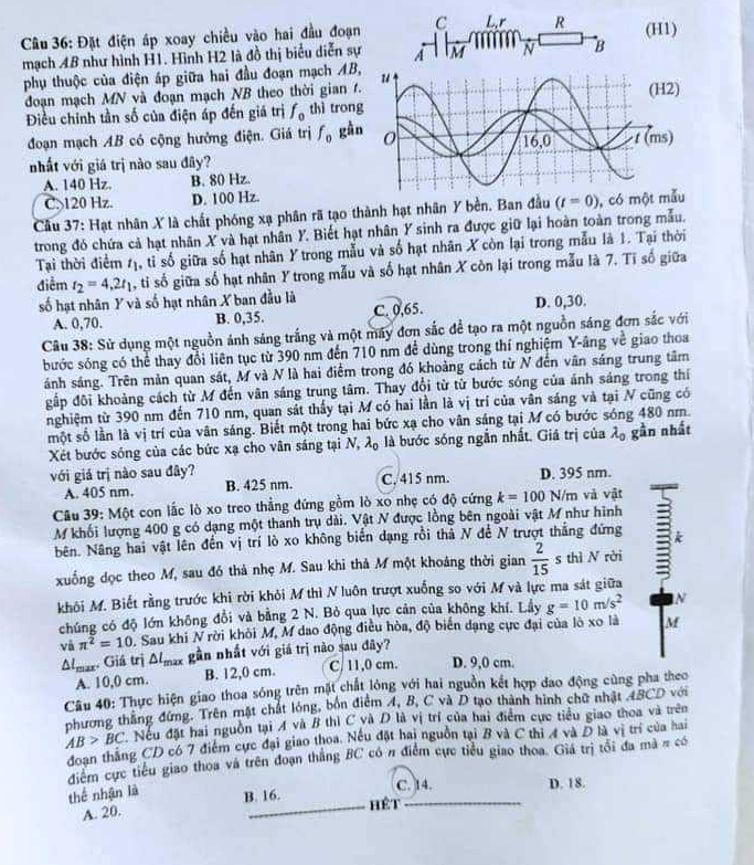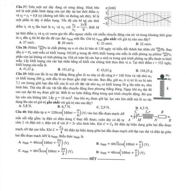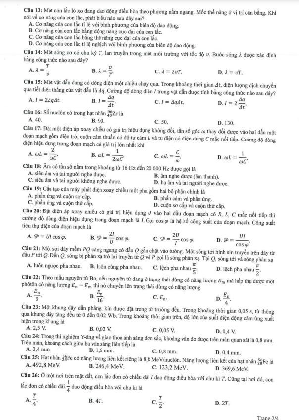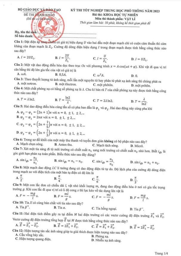 Mời quý độc giả tham khảo đề thi môn Vật lý thuộc bài thi tổ hợp KHTN kỳ thi tốt nghiệp THPT 2023: