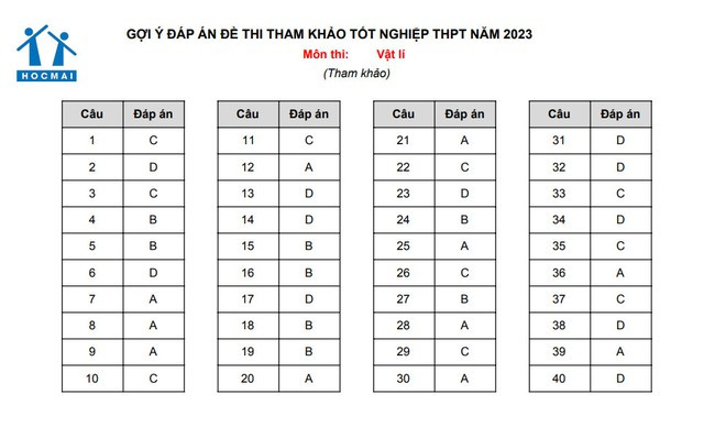 GD&TĐ - Gợi ý đáp án đề thi môn Vật lý (24 mã đề) kỳ thi tốt nghiệp THPT năm 2023 được Báo GD&TĐ cập nhật nhanh, chính xác nhất. Mời bạn đọc tham khảo.