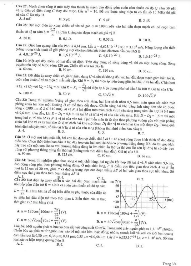 Đề thi và gợi ý lời giải môn Vật lý thi tốt nghiệp THPT năm 2023 ảnh 3