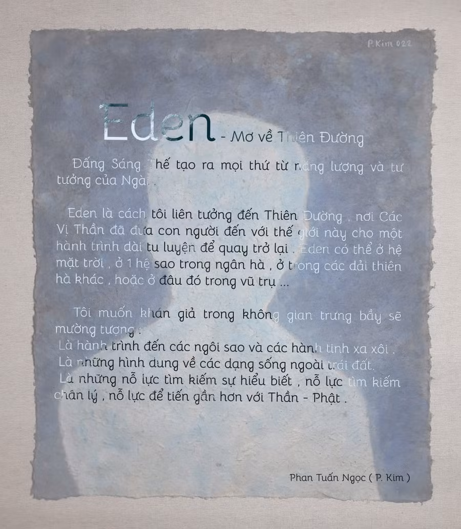 Trong triển lãm “Mơ về Thiên đường”, nghệ sĩ liên tưởng đến thiên đường - nơi các vị thần đưa con người đến với thế giới.
