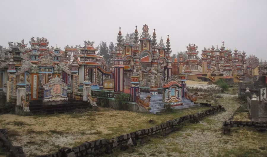 Hiện "thành phố ma" có tổng diện tích khoảng 40ha, toạ lạc trên phần đất của 4 thôn: Bằng Thượng, Trung Hải, Định Hải và An Mỹ với hàng ngàn, hàng ngàn lăng mộ nằm chen chúc nhau không một lối đi. Tuy ở cách khá xa nhau, nhưng nếu là người lạ thì sẽ không biết được chỗ nào với chỗ nào, thậm chí đi lạc không tìm thấy lối ra do các lăng mộ xây dựng liền nhau, kiến trúc lại na ná về sự cao và to lớn cũng như kiểu dáng, hoạ tiết...