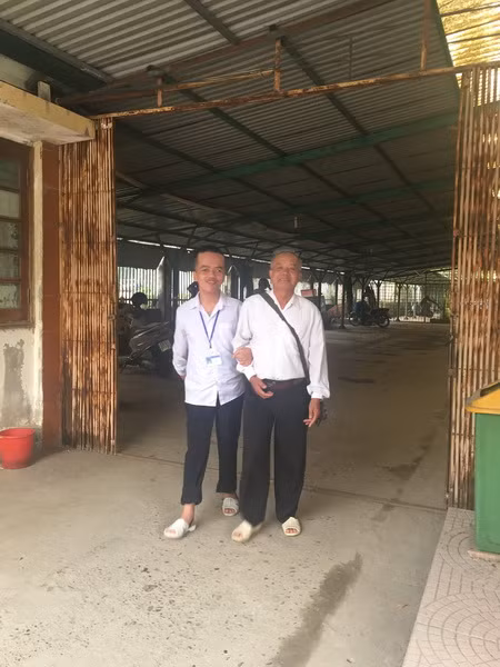 Sáng nào cũng vậy, khi sân trường chưa một bóng học sinh thì đã thấy hình ảnh hai ông cháu đưa nhau đến trường trên một chiếc xe máy cà cũ kĩ, bất kể trời mưa hay nắng. Cất xe vào nhà xe, ông đỡ cháu xuống, rồi hai ông cháu lại dắt nhau đi dọc sân trường và hành lang lớp học để vào lớp.