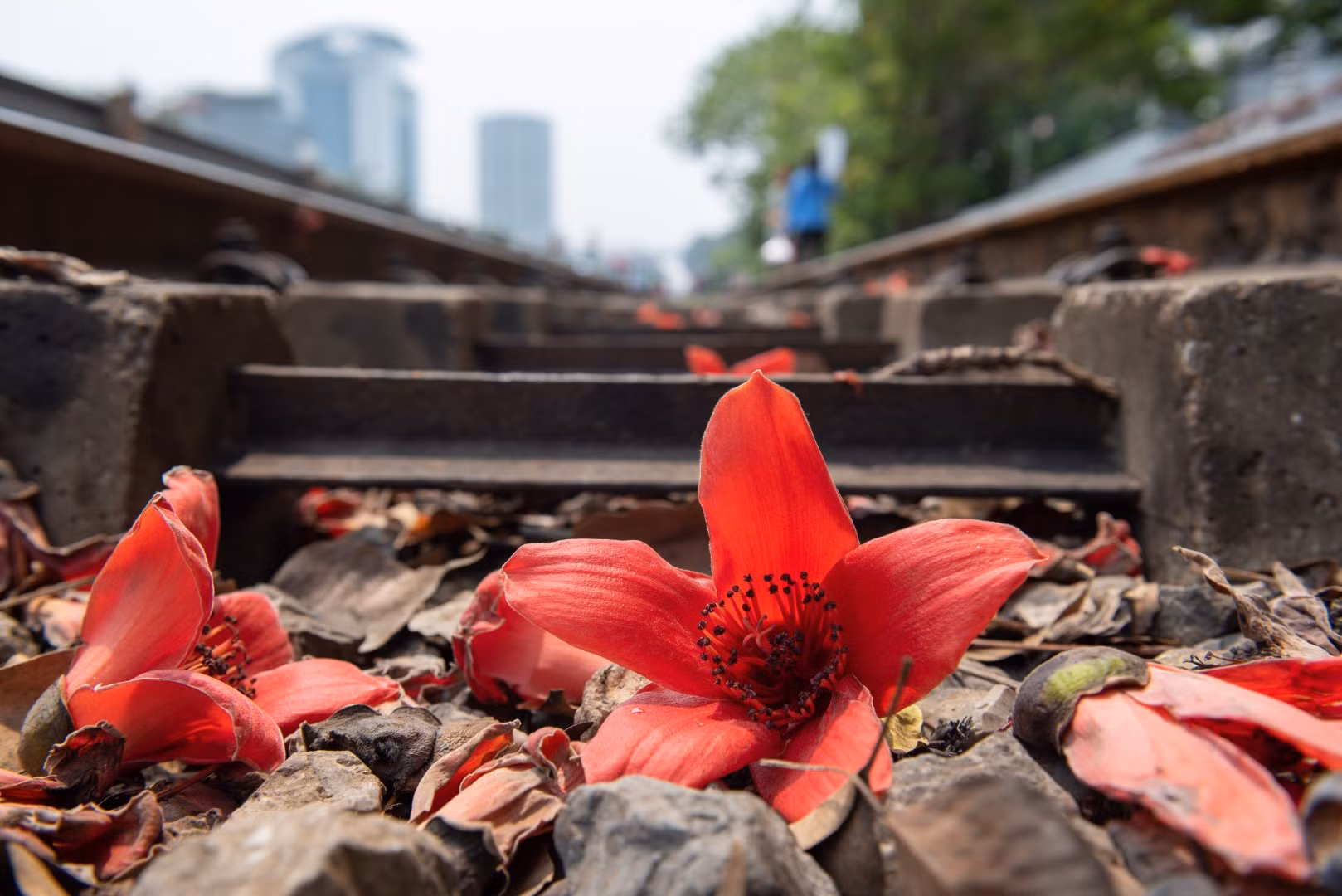 Vòng đời của hoa ngắn ngủi chỉ kéo dài vài ngày, nhưng khi rụng xuống bông hoa vẫn giữ được màu sắc đỏ rực nguyên vẹn không hề phai tàn hay héo úa như những loại hoa khác. Vậy nên, chẳng ai có thể làm ngơ được trước vẻ đẹp rực rỡ của hoa gạo. Sắc đỏ rực bừng sáng cả một khoảng trời khiến lòng người bồi hồi mê đắm.