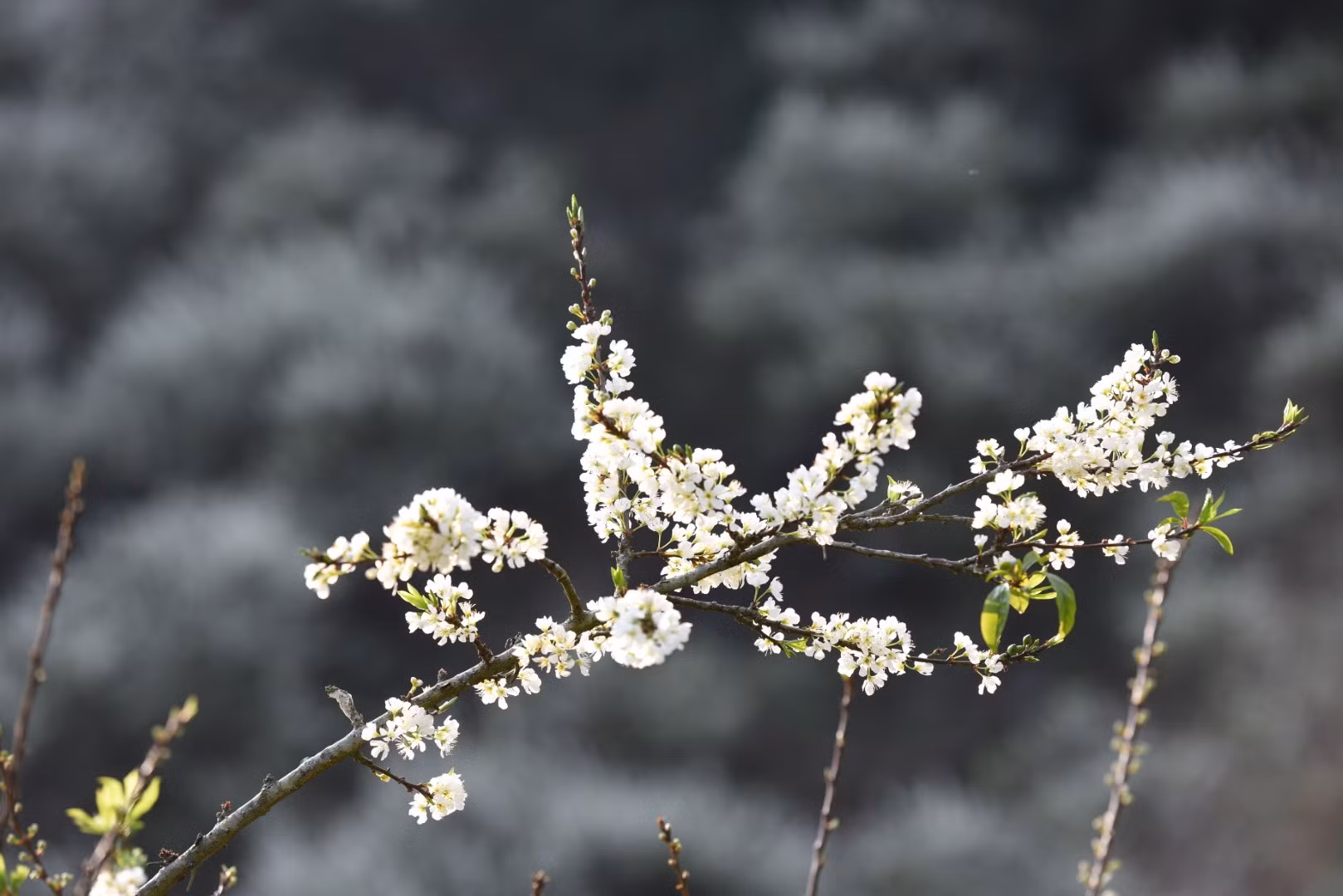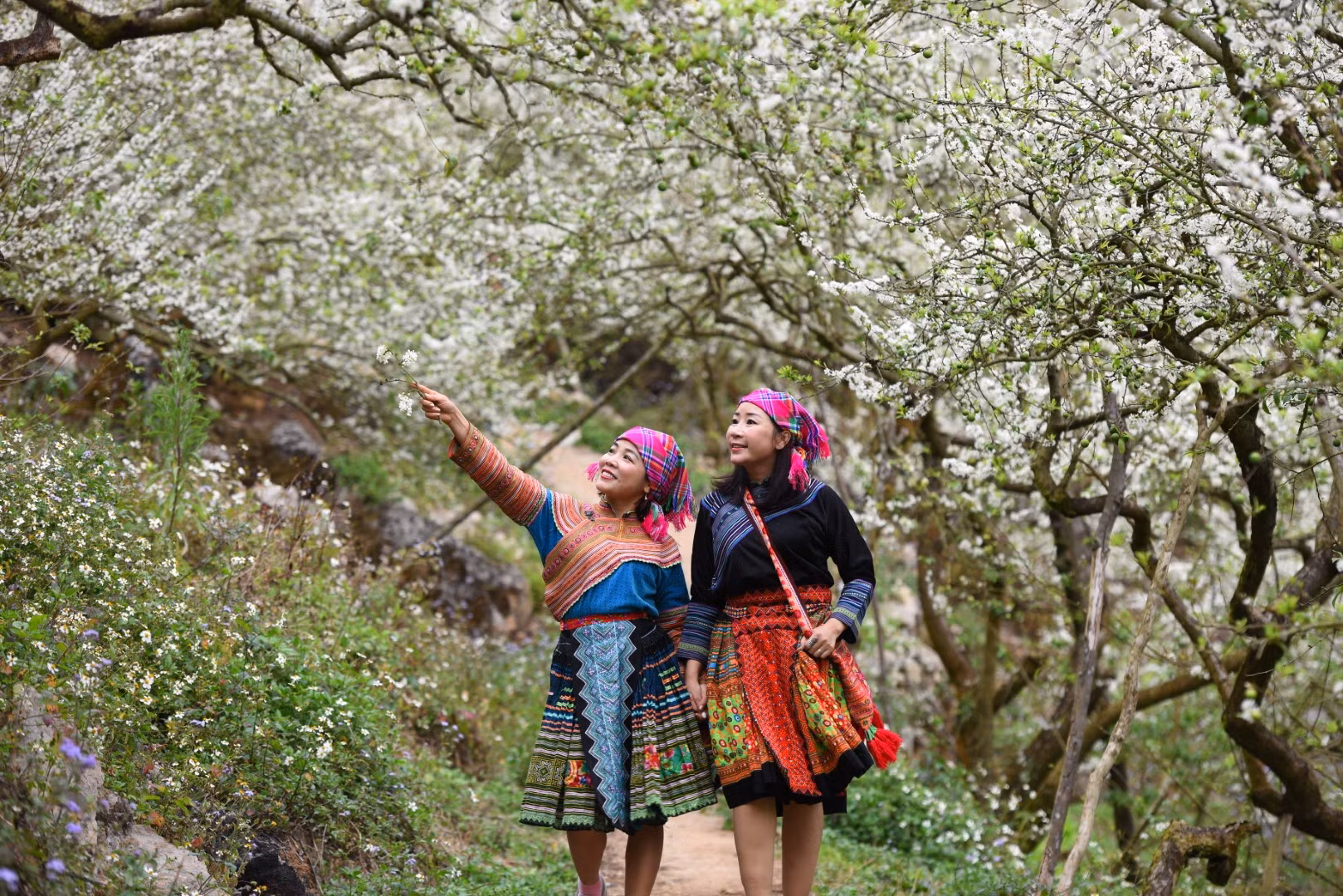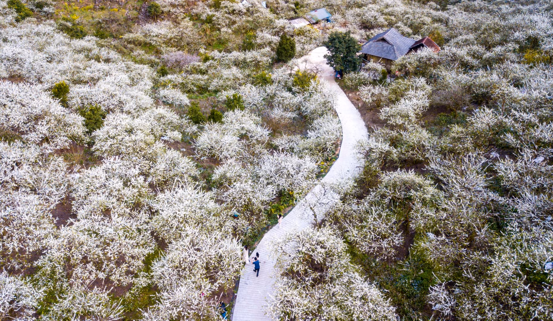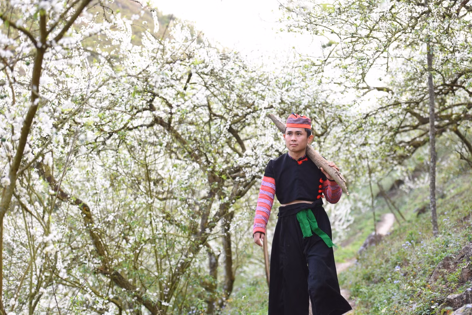 Hoa mận nở thành từng chùm, màu trắng xoá như những bông tuyết xinh xắn bao phủ khắp cả thung lũng, sườn đồi khiến lữ khách như lạc bước vào chốn thần tiên.