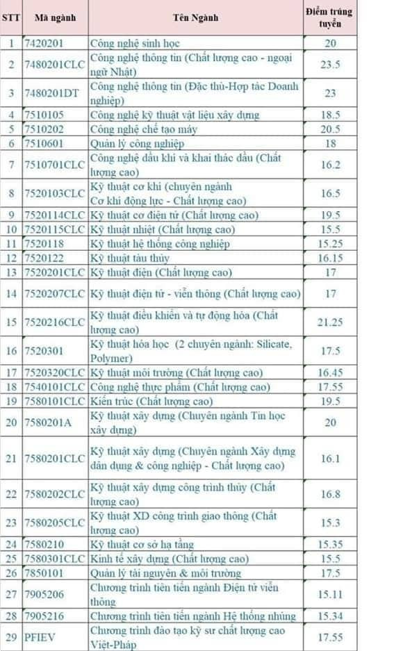 Điểm chuẩn cụ thể vào các ngành của trường ĐH Bách khoa, ĐH Đà Nẵng như sau: