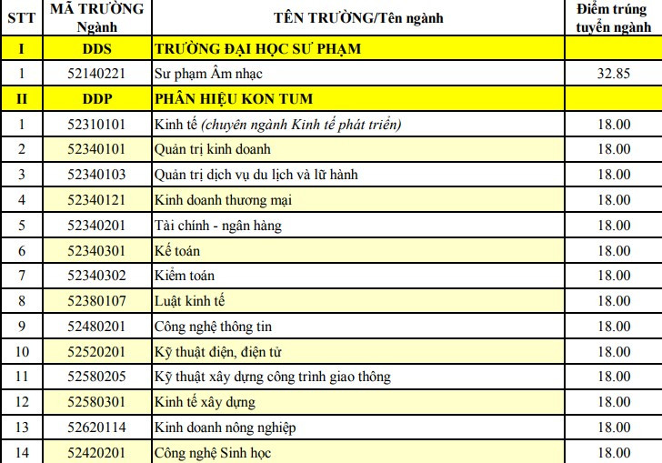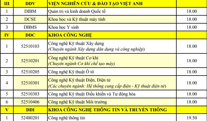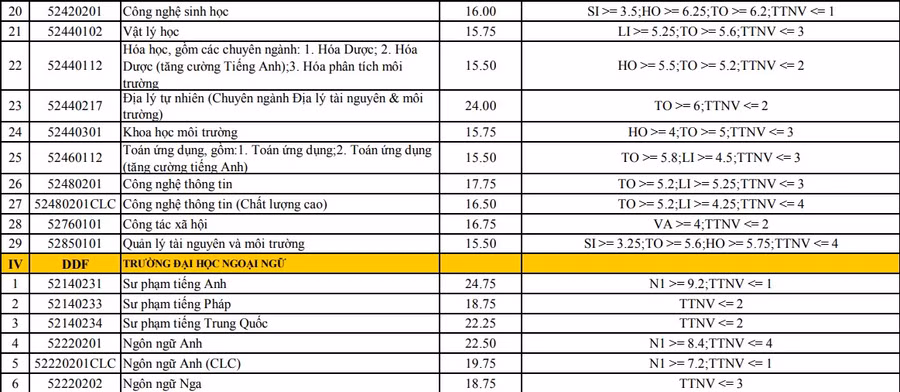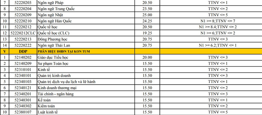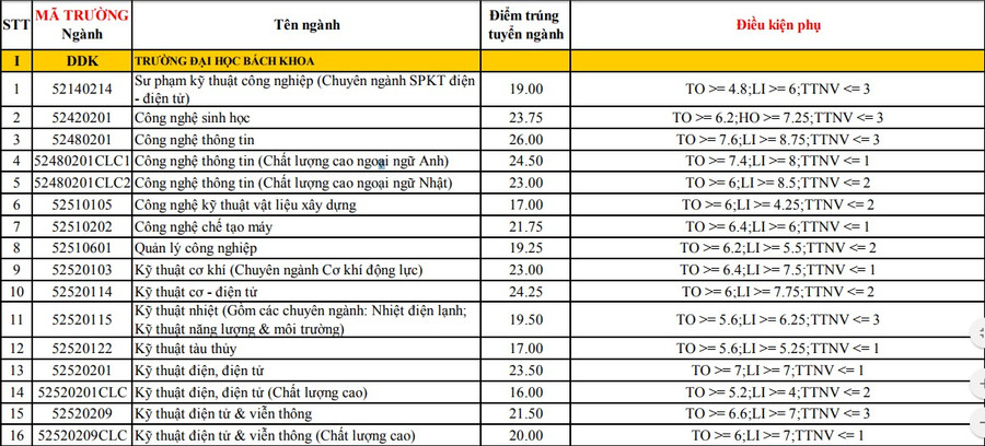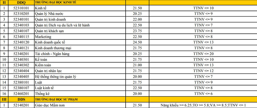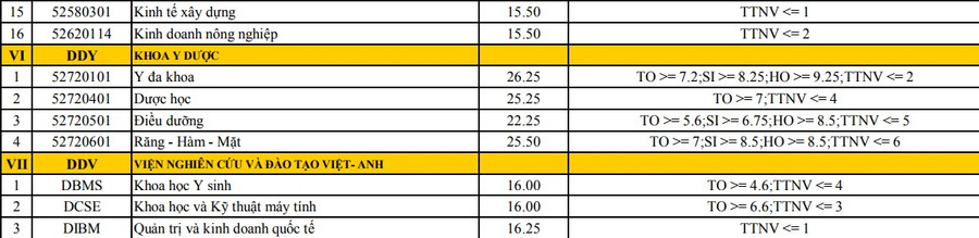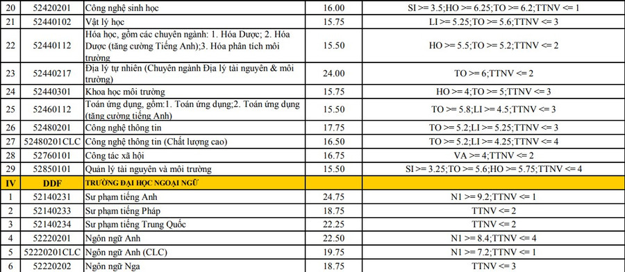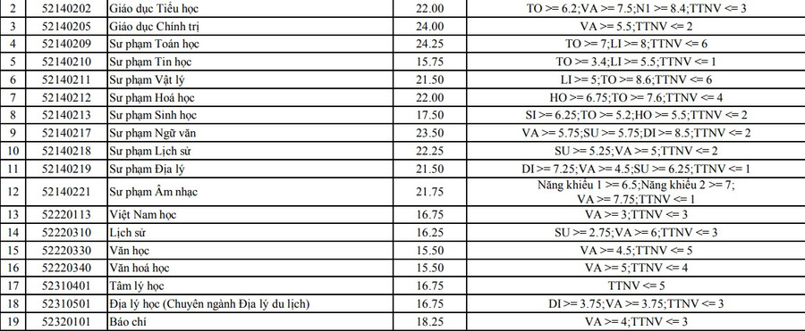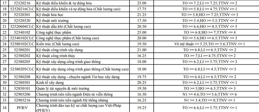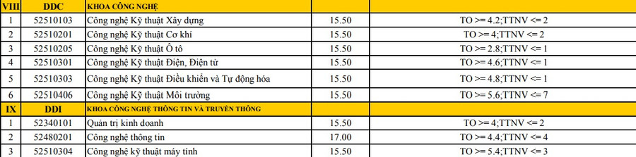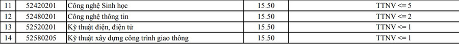 Cụ thể điểm xét tuyển bằng kết quả thi THPT quốc gia như sau: