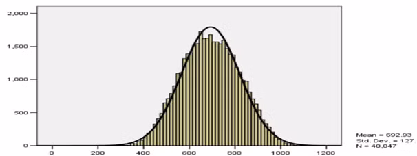 Phổ điểm của 40.047 thí sinh có dạng phân bố chuẩn, trải rộng từ 217 điểm đến 1108 điểm (trên thang điểm 1200 điểm), thể hiện tính phân loại cao của đề thi, thuận lợi cho công tác xét tuyển.