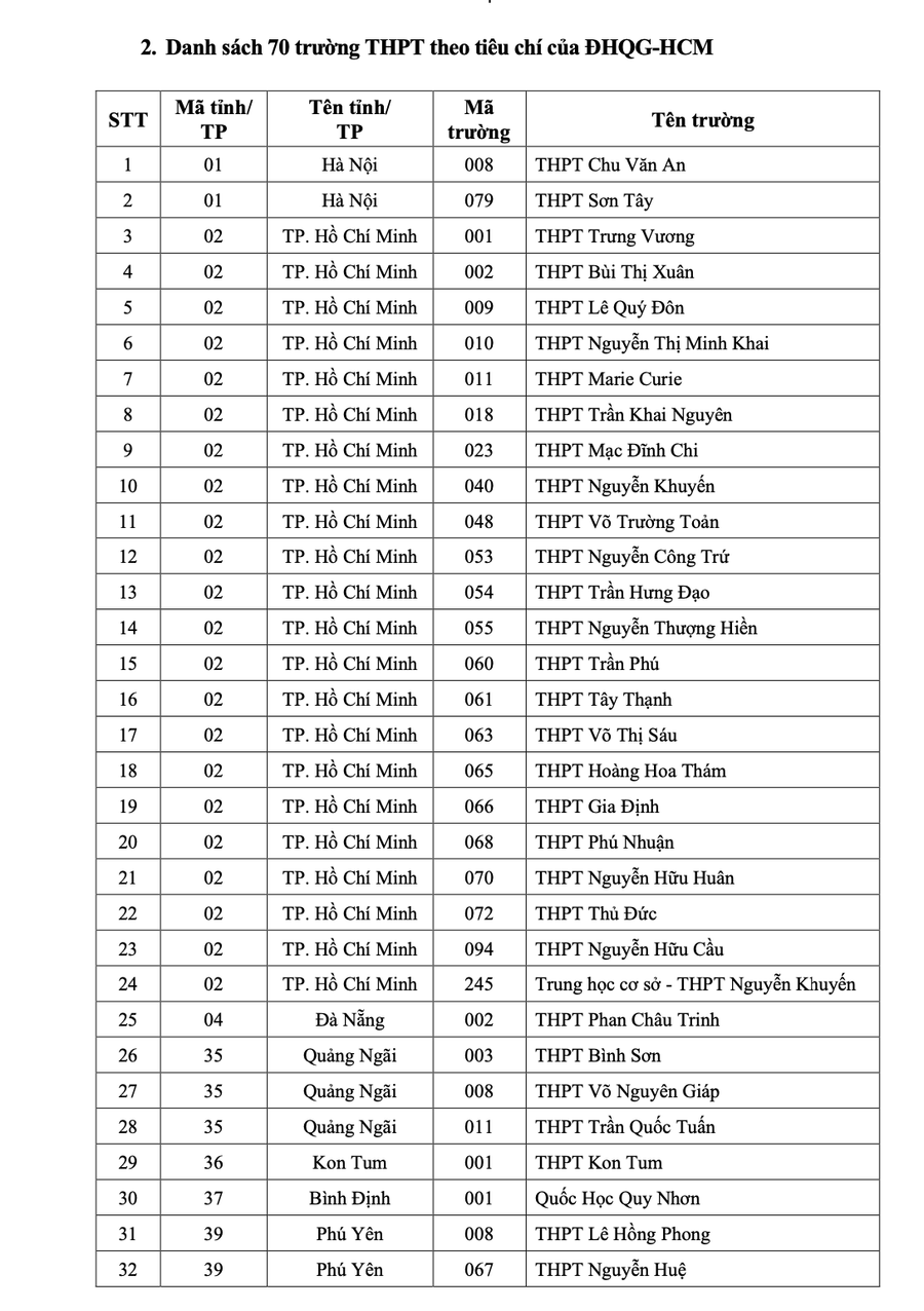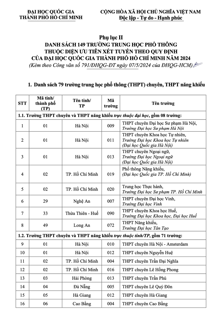 | Danh sách 149 trường THPT được ưu tiên xét tuyển vào các ngành/nhóm ngành thuộc Đại học Quốc gia TPHCM. Ảnh: ĐHQG-HCM |
