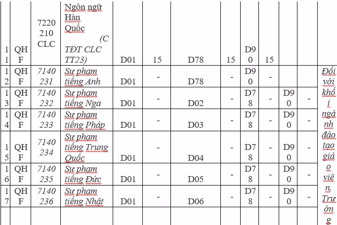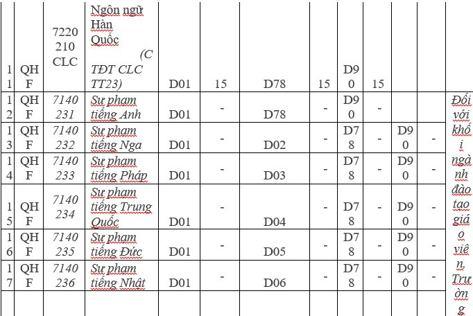 Đối với khối ngành đào tạo giáo viên (các ngành sư phạm), Trường nhận ĐKXT căn cứ ngưỡng đảm bảo chất lượng đầu vào của Bộ GD&ĐT năm 2018.