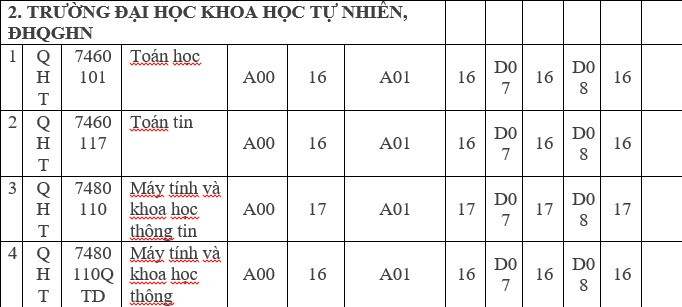 Điểm tối thiểu cho mỗi môn thi/bài thi trong tổ hợp xét tuyển phải lớn hơn 1,0 điểm