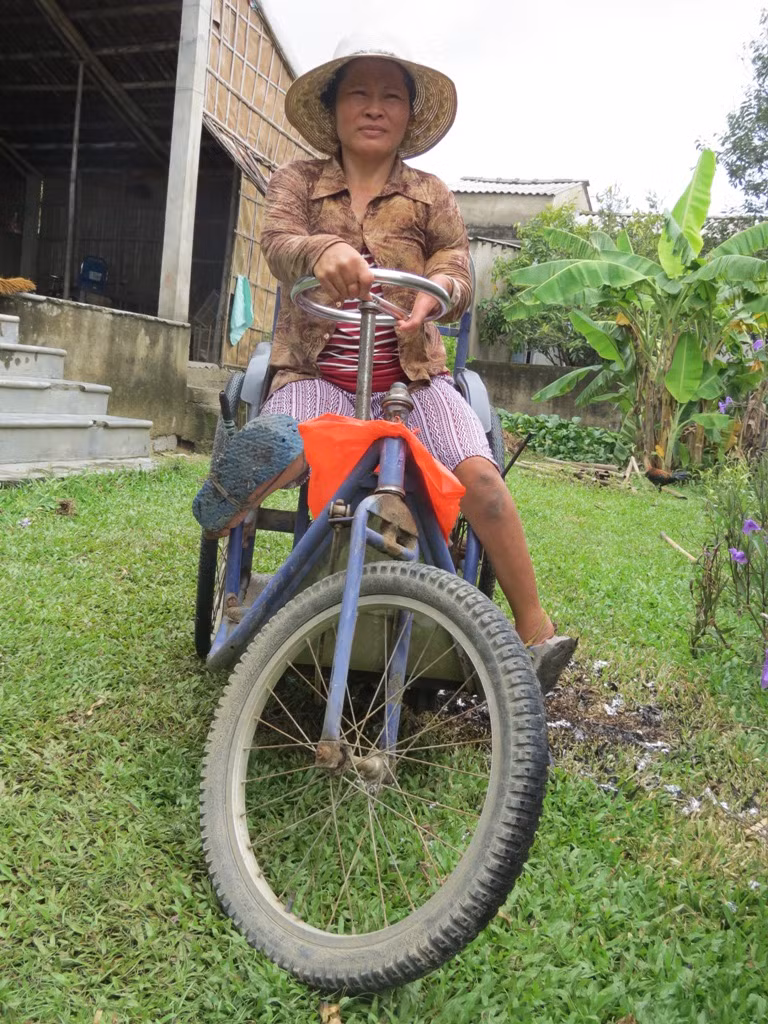 "Sau này nghe mẹ kể lại, lúc mình sinh ra thân hình nhỏ tí, lại bị dị tật khi chân phải bị cụt gần ngang gối, chân trái queo quắt không có bàn chân. Riêng 2 bàn tay chỉ có duy nhất 1 ngón tay lành lặn như người thường nên làng trên xóm dưới đều bàn tán xôn xao. May thay sau đó, 6 người em của mình sinh ra đều được lành lặn...”, nét mặt đượm buồn, chị Thuận kể.