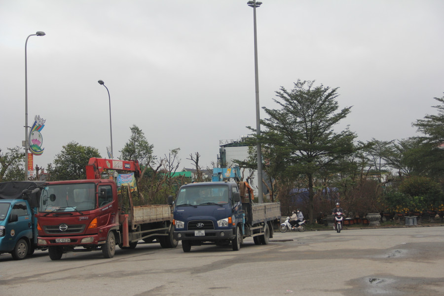 Từ 17 tháng Chạp (âm lịch) khi những chuyến cây cảnh đầu tiên được bày bán, đội xe chở thuê đã sửa soạn phương tiện bắt đầu công việc như: xe máy, xe kéo, ba gác… thậm chí là các những xe cẩu chuyên chở các cây khủng.