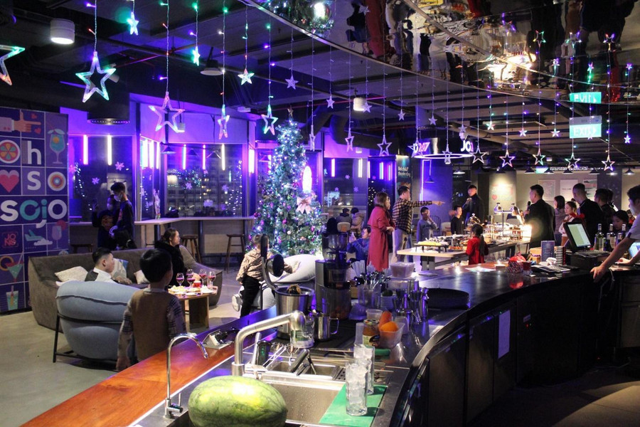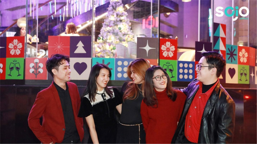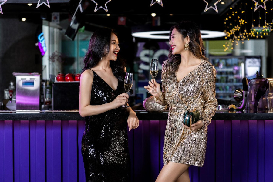 Hoa hậu Du lịch Việt Nam Kỳ Duyên (váy trắng) đã chọn SOJO Hotel Ga Hanoi cho bữa tiệc cuối năm cùng bạn bè. “Tôi đặc biệt yêu thích không gian trẻ trung, sôi động ở đây”, Kỳ Duyên chia sẻ.