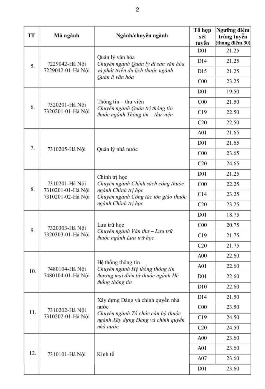 Các ngành như: Quản trị văn phòng, Quản lý văn hóa, Thông tin - thư viện, Quản lý nhà nước, Chính trị học, Lưu trữ học, Kinh tế... đều có điểm rất cao dao động từ 21,25 điểm đến 25,70 điểm.