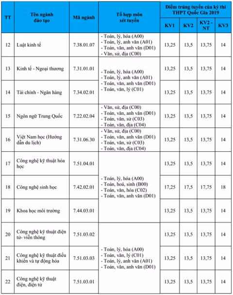 Bảng điểm trúng tuyển cụ thể từng ngành vào LHU: