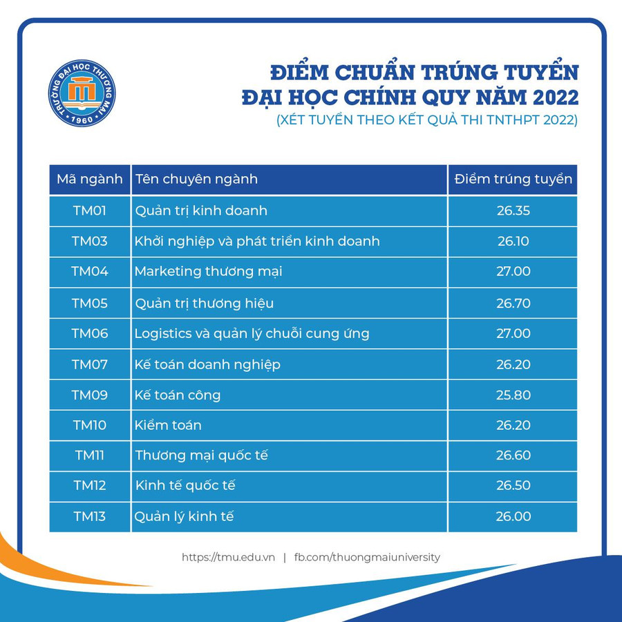 Đây là mức điểm xét tuyển theo kết quả thi tốt nghiệp THPT năm 2022 đối với các ngành (chuyên ngành) thuộc chương trình đào tạo chuẩn. Cụ thể như sau: