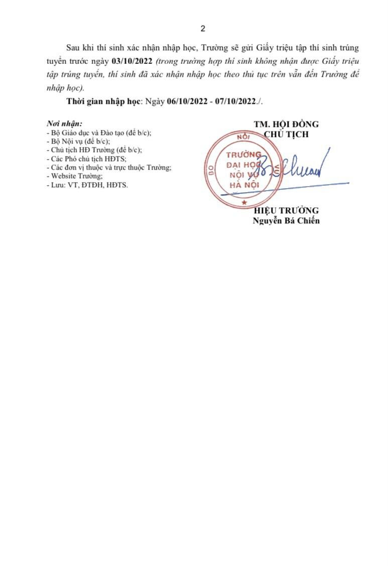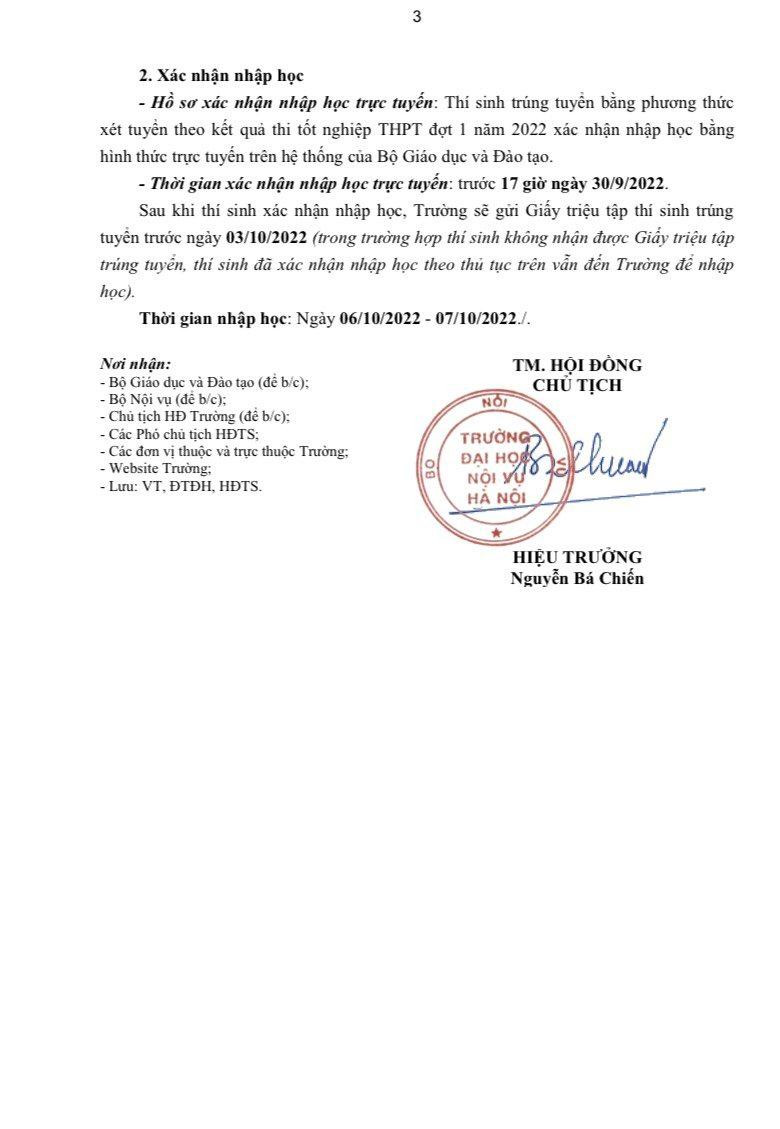 Điểm trúng tuyển Đại học chính quy năm 2022 tại trụ sở chính Hà Nội: