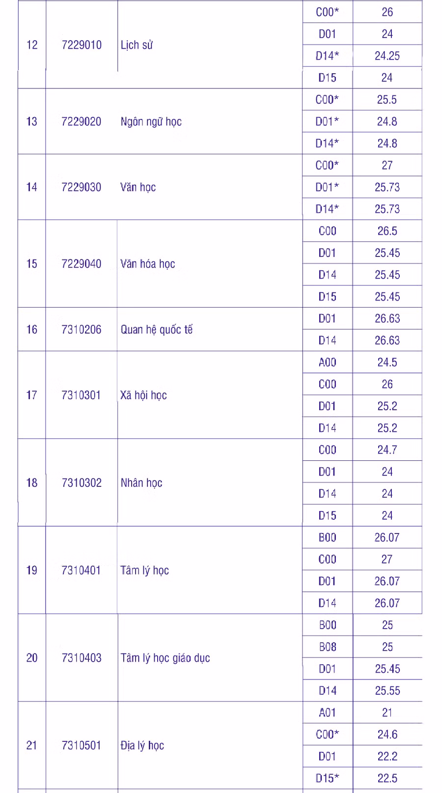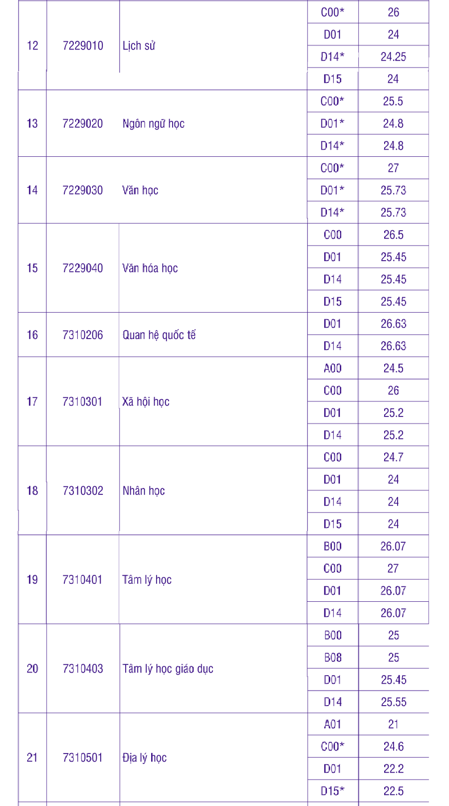 | Điểm chuẩn Trường ĐH Khoa học xã hội và Nhân văn. |