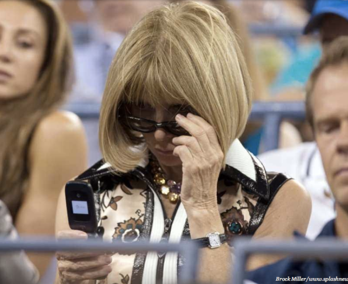 Mặc dù Anna Wintour sở hữu một chiếc iPhone và một chiếc BlackBerry, phóng viên vẫn chụp được ảnh bà đem theo chiếc điện thoại nắp gập tại Giải Quần vợt Mỹ mở rộng vào đầu năm nay.
