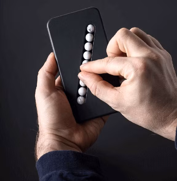 Chuyên gia ở Vienna này đã làm ra 5 mẫu thiết bị, tập trung vào việc giúp giải quyết những thói quen vuốt trên màn hình cảm ứng của điện thoại. Chúng được gắn một tràng hạt bằng đá để người dùng có thể thao tác trên đó, như di chuyển, thu phóng và vuốt trên điện thoại thật, tất nhiên là không có tín hiệu nào hiện ra.