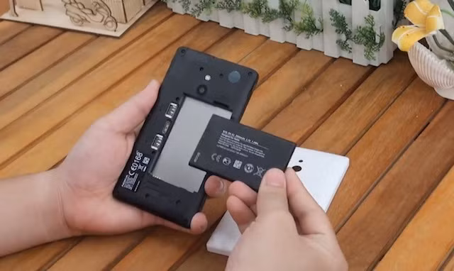 Nên 2: Tháo ngay pin, sim, thẻ nhớ ra khỏi máy để tránh bị chập điện. Với những điện thoại nguyên khối thì ngược lại, bạn cần tắt nguồn, không nên tháo sim, thẻ nhớ tránh nước lọt vào bên trong máy.