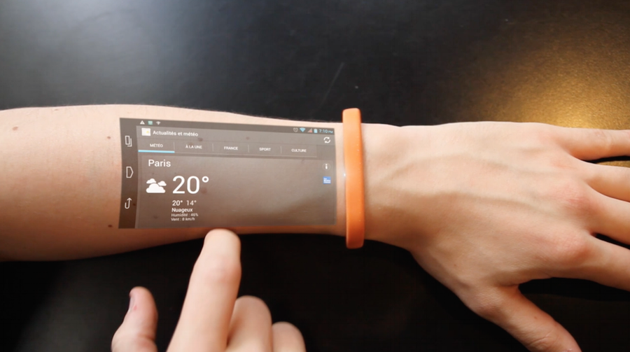 Chúng ta có thể hình dung như sau: Trong bộ phim hành động viễn tưởng "Total Recall", nữ diễn viên Kate Beckinsale đã chat video với sếp của mình thông qua “một chiếc điện thoại” được “nhúng” trong lòng bàn tay. Đó chính là tương lai của chiếc điện thoại, kể cả điện thoại thông minh.