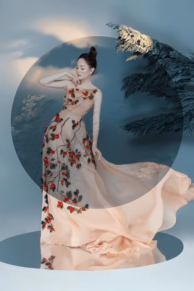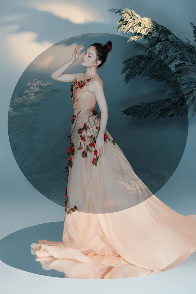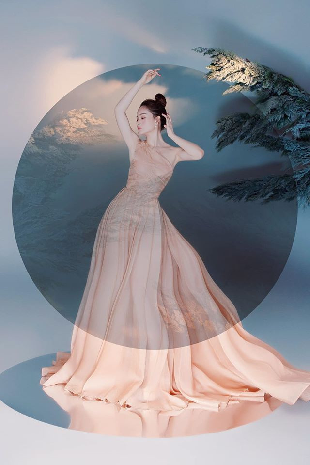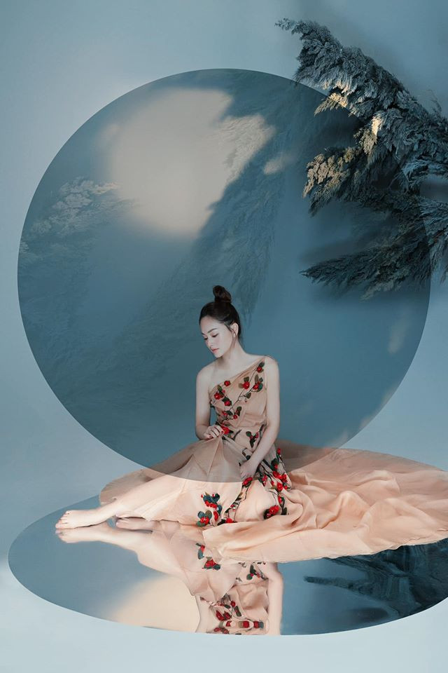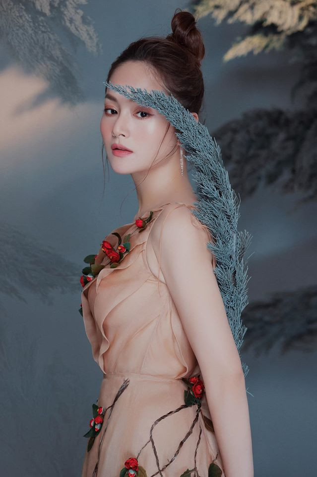 Bộ ảnh mới đây khiến diễn viên Lan Phương như được hóa thân thành chị Hằng trên cung trăng. Không trang điểm sắc sảo hay chọn trang phục tươi sắc, Lan Phương sử dụng những chiếc đầm lụa nhẹ nhàng, thướt tha, điểm xuýt là những bông hồng nhỏ đính kết tinh tế, phối cùng kiểu tóc bới cao khoe gương mặt thanh tú.