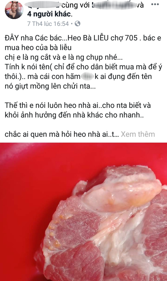 Tuy nhiên, những ngày vừa qua, trên mạng xã hội xuất hiện 2 tài khoản mang tên G.V và Q.V đăng tải thông tin và hình ảnh cho rằng, người thân của họ mua thịt lợn của bà Liễu, đến khi về nhà thì cắt ra thấy xuất hiện một số đốm đỏ. Hai chủ tài khoản này khuyến cáo người dân nên cẩn trọng khi mua và sử dụng thịt lợn để tránh ảnh hưởng đến sức khỏe.