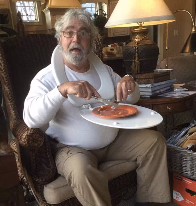 Sử dụng nắp bồn cầu để làm bàn ăn di động.