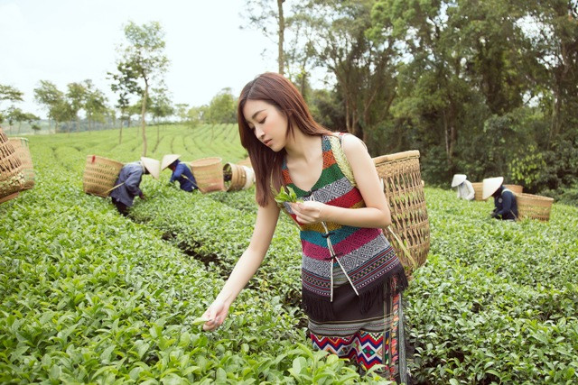 Không những thế, các thôn nữ xứ B’Lao còn đưa gùi cũng như hướng dẫn cho Đỗ Mỹ Linh và Kiều Loan các bước hái trà như thế nào mới đúng cách. Ban đầu còn chút bỡ ngỡ nhưng sau đó cả hai lại vô cùng hào hứng khi chìm đắm trong vị ngọt của những lá trà xanh.