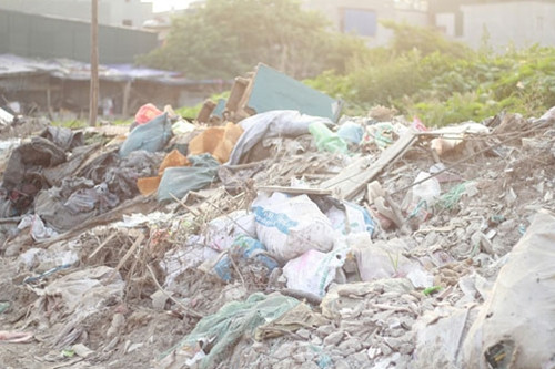| Những đống rác hai ven đường chất cao sừng sững, bốc mùi hôi thối. |