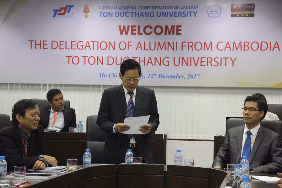 Phát biểu tại buổi gặp gỡ, Ngài Quốc vụ Khanh Yuok Ngoy đã bày tỏ sự cảm ơn đối với Trường ĐH Tôn Đức Thắng nói riêng cũng như các trường ĐH đã từng đào tạo các lưu học sinh của đoàn và UBND các tỉnh, thành, Bộ GD&ĐT trong dịp giao lưu, tham quan lần này.