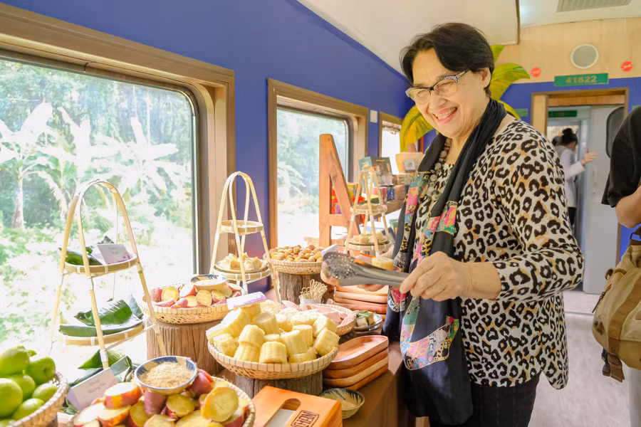 Đoàn tàu gồm 5 toa xe ghế mềm có điều hoà và 1 toa xe sinh hoạt cộng đồng phục vụ các chương trình văn hoá và ẩm thực địa phương.
