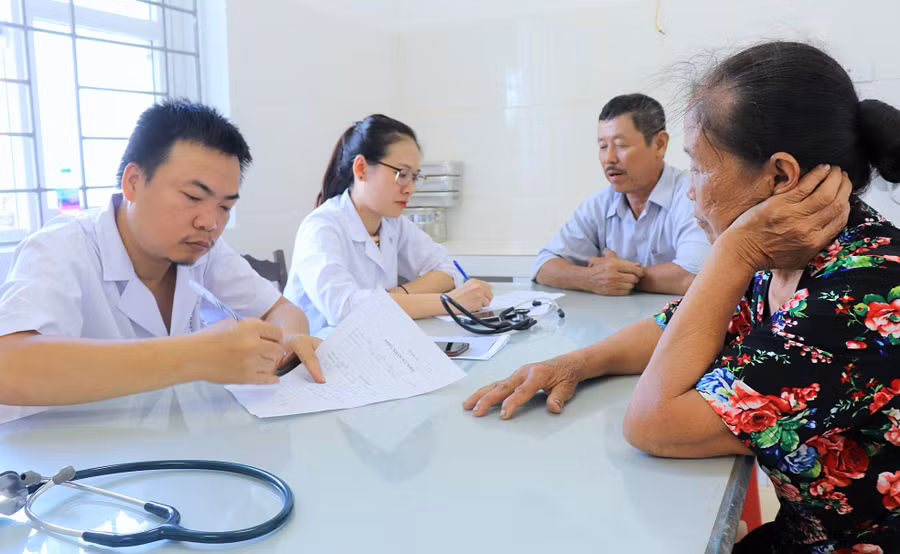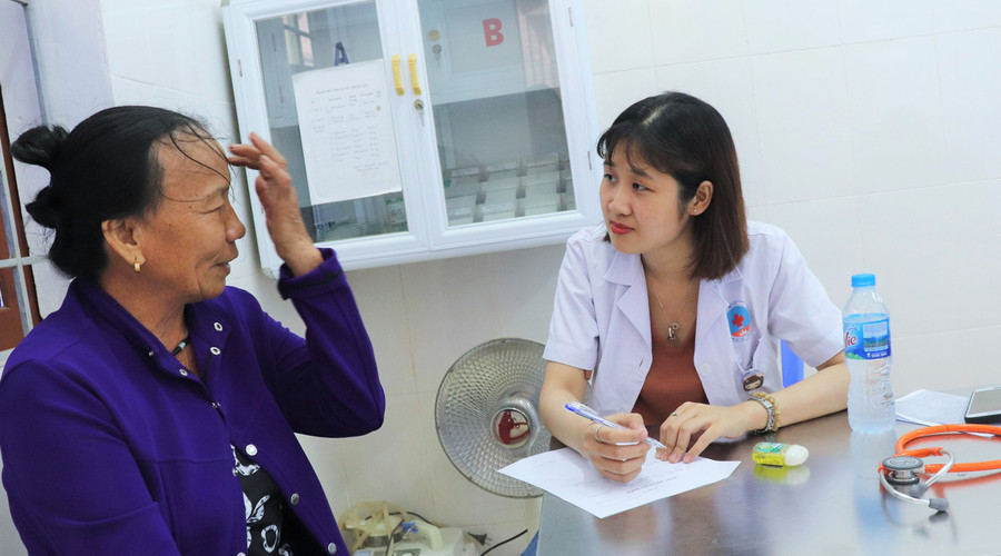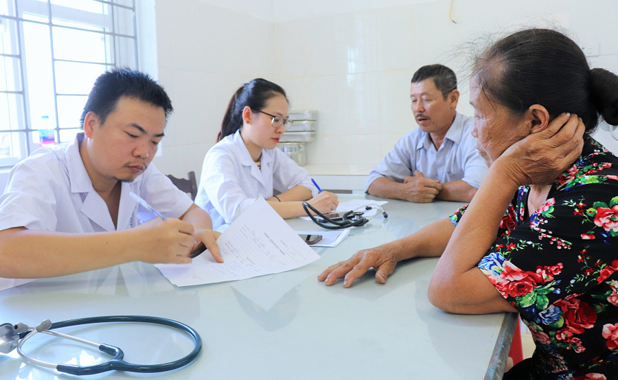 | Người dân được đội ngũ bác sỹ trẻ nhiệt tình khám, tư vấn sức khoẻ. |