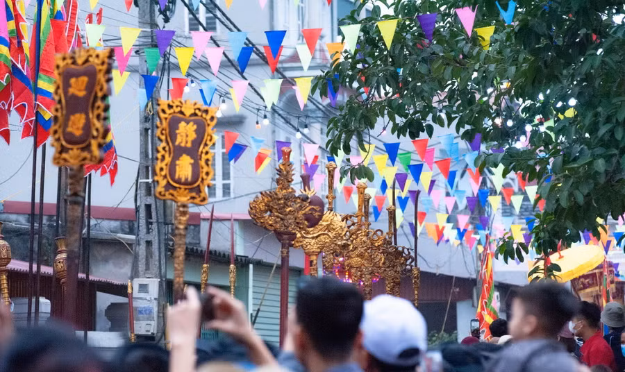 | Người dân Kim Thượng nô nức trẩy hội. |