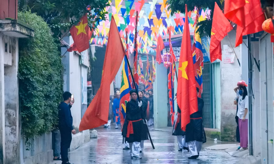 | Được tham gia phục vụ lễ hội là vinh dự của các cụ và trai đinh của hai làng. |