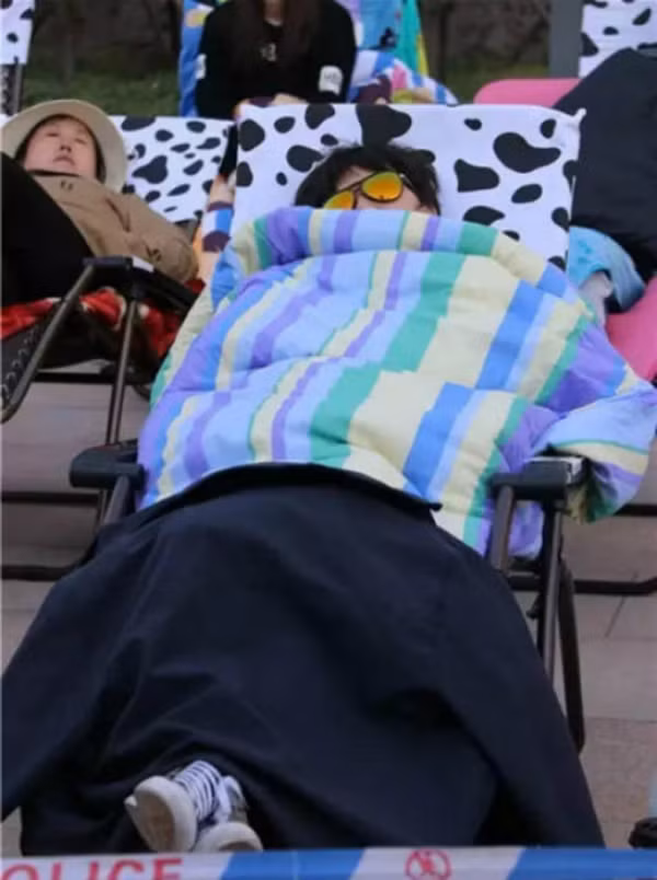 Tránh xa những đám đông du khách đi nghỉ mát trong Tuần lễ Vàng mừng Quốc khánh Trung Quốc, một số người dân lại gói ghém đồ đạc lên đường đi thi ngủ trong công viên tại thành phố Cáp Nhĩ Tân (thuộc tỉnh Hắc Long Giang).