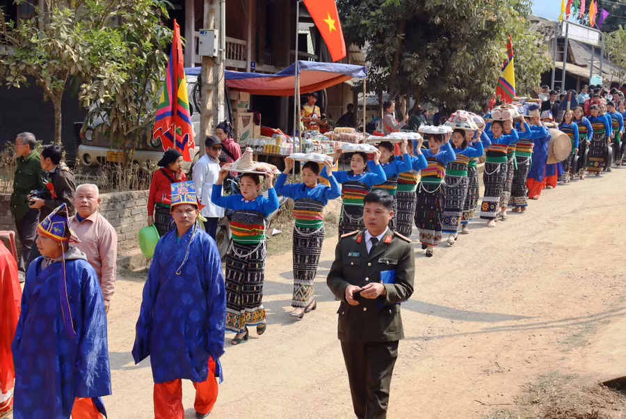 | Nghi thức rước kiệu, dâng lễ tại Lễ hội Mường Xia năm 2023. |