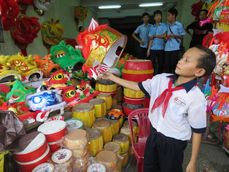 Niềm vui của các cháu nhỏ khi mùa trung thu về được cùng nhau xuống phố để mua ông lân, ông địa