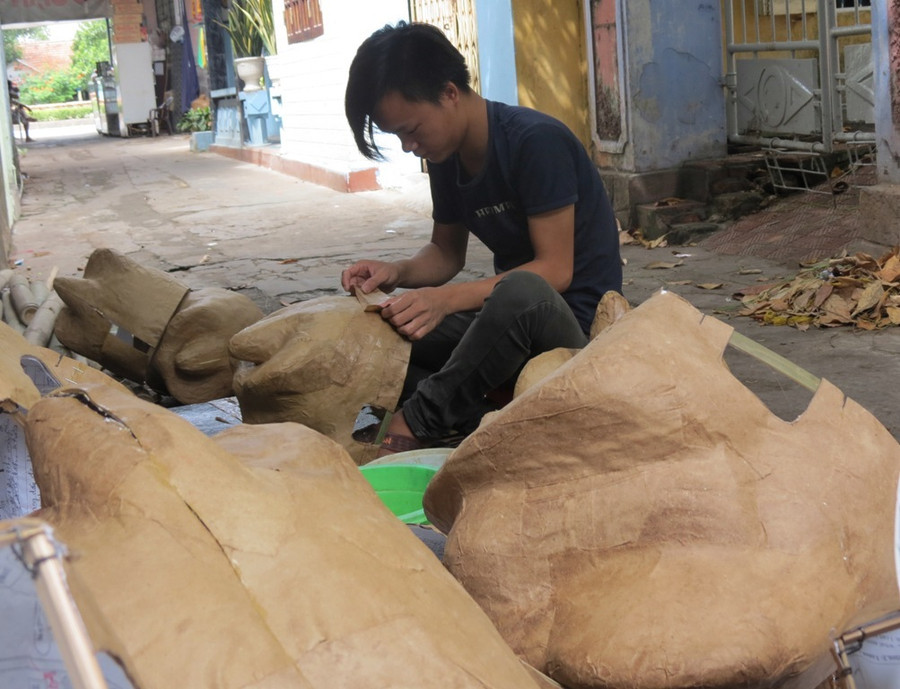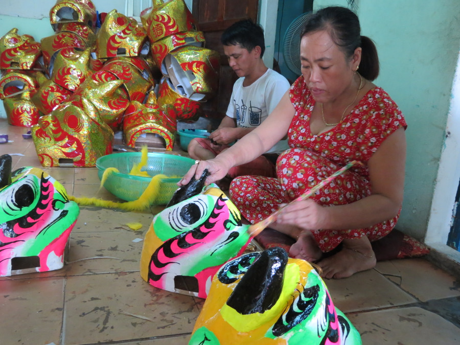 Cứ mỗi dịp trung thu về nghề làm đầu lân truyền thống xứ Huế lại lên ngôi. Để có được một chiếc đầu lân ưa ý, mang kiểu dáng lân cung đình Huế những người thợ thủ công ở xứ sở kinh kỳ phải trải qua nhiều công đoạn rất nghiêm ngặt từ việc làm khung, chọn tre, dán hồ cho đến trang trí mắt lân