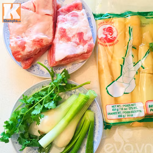 – 300gr măng tươi, 1 củ hành, 5 thìa nhỏ nước mắm (tuỳ khẩu vị), 1 thìa nhỏ mì chính, các loại rau thơm; hành, mùi ta, mùi tàu