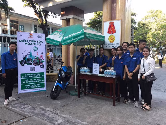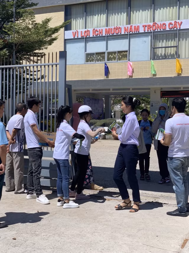 Cùng với những chai nước mát, những lời hỏi han thân tình, các tình nguyện viên của VinFast đã giúp các sĩ tử vững tin hơn trước khi bước vào phòng thi.