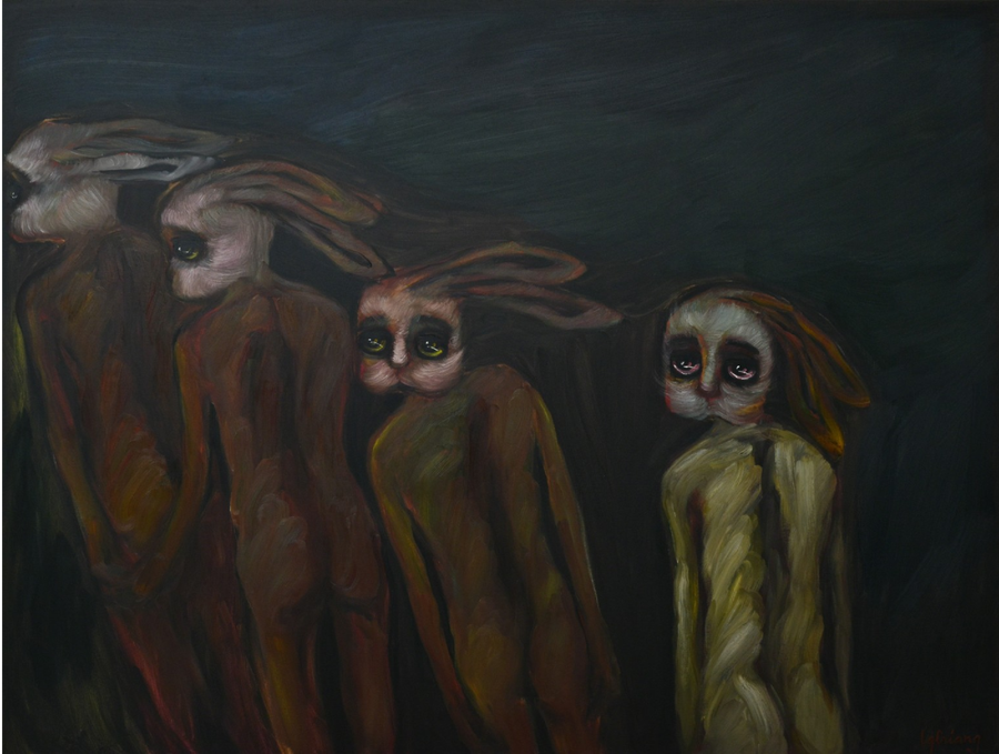 “Lam nắng, sa mưa” dẫn người xem lạc vào miền mênh mang cô độc của nghệ sĩ Lý Trần Quỳnh Giang. Ở nơi đây, gam màu cảm xúc và thế giới nội tâm của nghệ sĩ hiện lên qua những sinh vật trữ tình. Mỗi chân dung sơn dầu là một tâm cảnh không lời, sự cô đơn sâu thẳm in đậm vào tâm khảm.