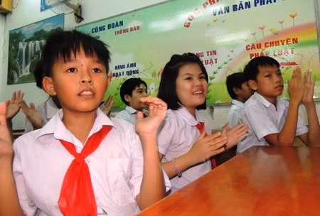 Toàn trường có 61 học sinh từ lớp 1 đến lớp 5 với 5 giáo viên phụ trách. Có em đến trường đúng tuổi nhưng có những học sinh 20 - 30 tuổi, đã đi làm, tham gia lớp học xóa mù chữ.