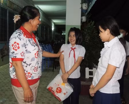 “Các em rất thiệt thòi nhưng còn có những em nhỏ không được đến trường hay phải đu dây, chui vào túi ni lon qua sông đến trường. Thầy trò chúng ta còn may mắn hơn nhiều nên hãy thật sự cố gắng”.