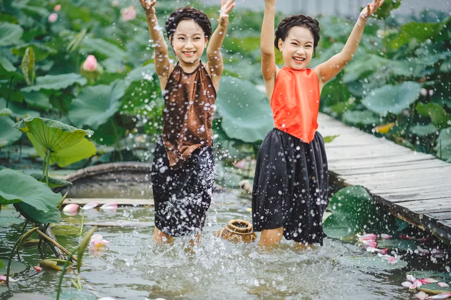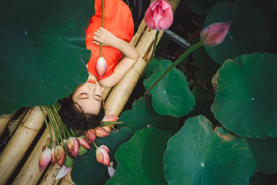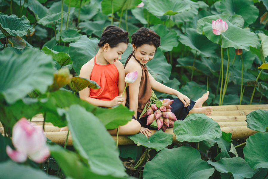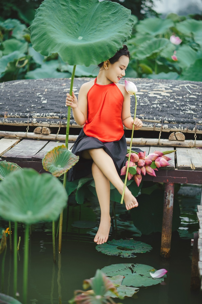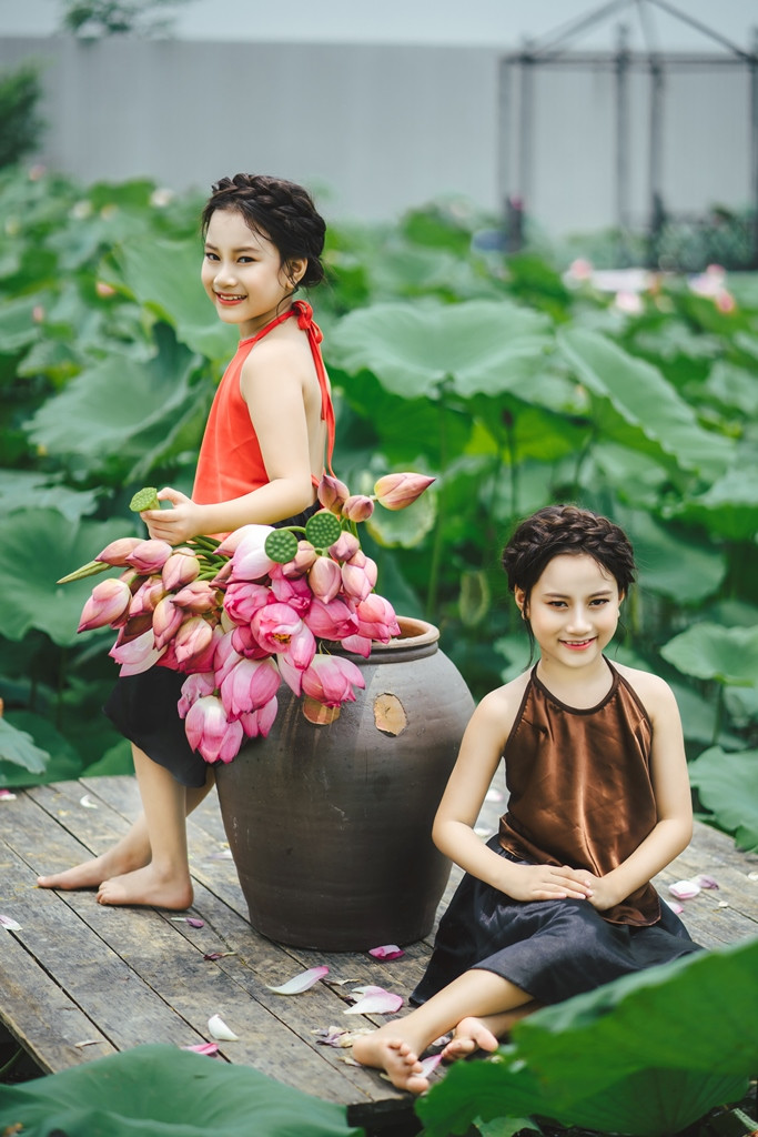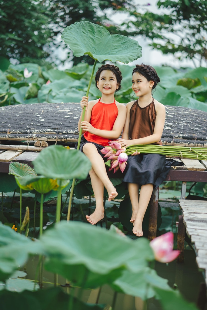 Bộ ảnh bên hoa sen của 2 em, chắc hẳn sẽ mang đến một luồng gió mới, một không khí thanh mát và trong lành bởi vẻ đẹp thuần khiết, hồn nhiên trẻ thơ.