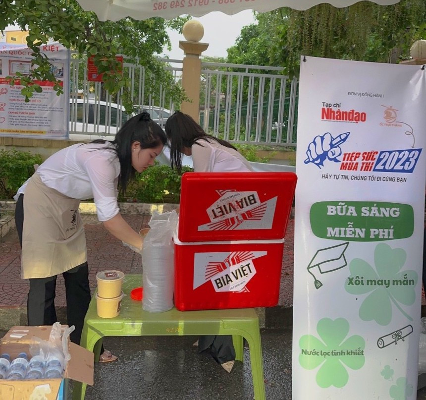 Tại Khu vực TP Thanh Hoá, Văn phòng Tạp chí Nhân đạo khu vực Bắc miền Trung và Nhà hàng hải sản ốc Trực thăng cũng đã phát hàng trăm suất xôi ăn sáng cùng nước uống miễn phí tại điểm thi Trường THPT Đào Duy Từ và Trường THPT Hàm Rồng trong 2 ngày thi.